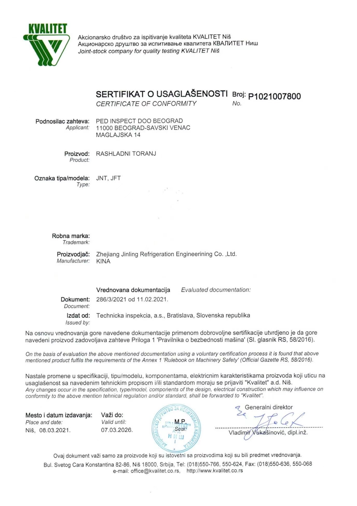 JFT系列节能产品认证证书